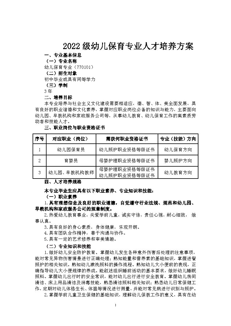 2022级幼儿保育专业人才培养方案(思想政治组)